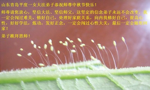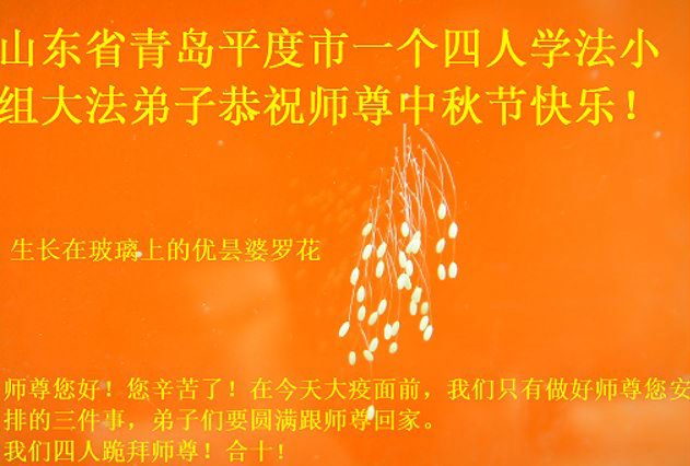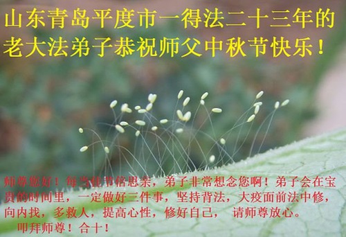 Falun Dafa Practitioners from Qingdao City Respectfully Wish Master Li Hongzhi a Happy Mid-Autumn Festival (25 Greetings)