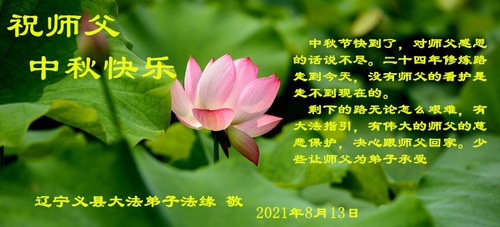 Falun Dafa Practitioners from Jinzhou City Respectfully Wish Master Li Hongzhi a Happy Mid-Autumn Festival (22 Greetings)