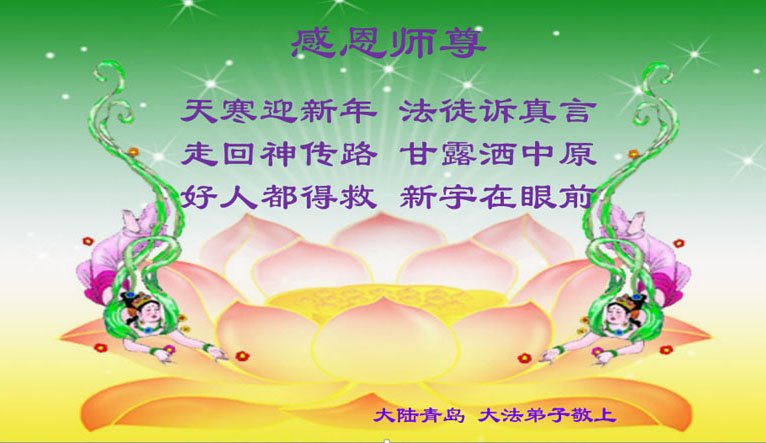 Falun Dafa Practitioners from Qingdao City Respectfully Wish Master Li Hongzhi a Happy New Year (26 Greetings)