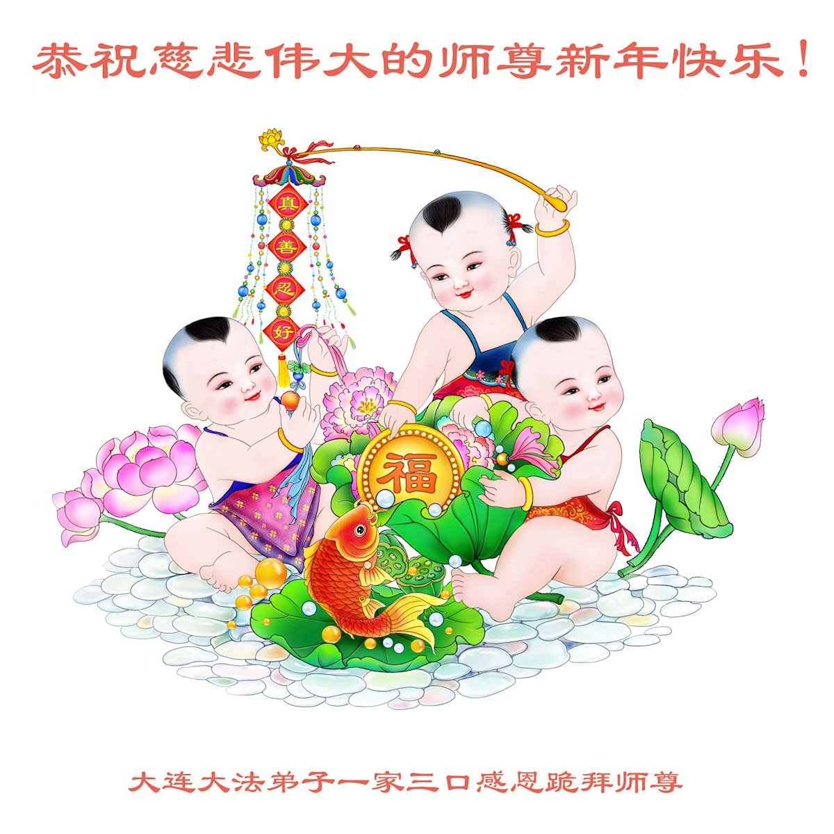 Falun Dafa Practitioners from Dalian City Respectfully Wish Master Li Hongzhi a Happy New Year (26 Greetings)