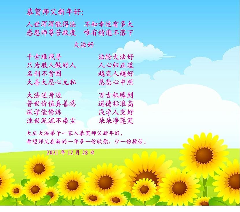 Falun Dafa Practitioners from Daqing City Respectfully Wish Master Li Hongzhi a Happy New Year (25 Greetings)