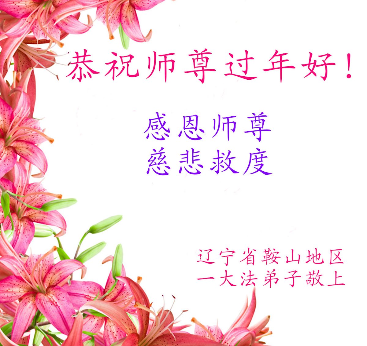 Falun Dafa Practitioners from Liaoning Province Respectfully Wish Master Li Hongzhi a Happy Chinese New Year (20 Greetings)
