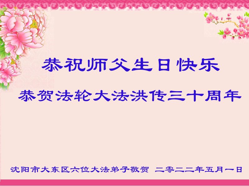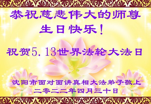 Falun Dafa Practitioners from Shenyang City Celebrate World Falun Dafa Day and Respectfully Wish Master Li Hongzhi a Happy Birthday (22 Greetings)