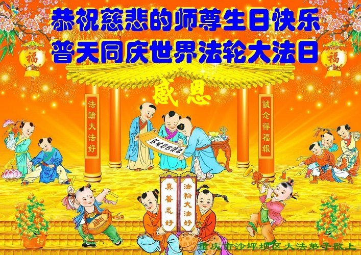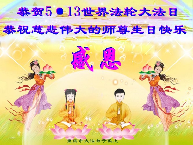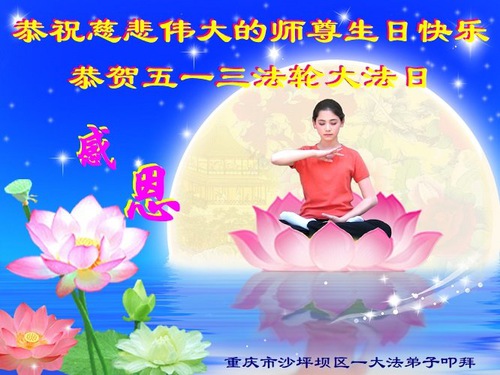 Falun Dafa Practitioners from Chongqing Celebrate World Falun Dafa Day and Respectfully Wish Master Li Hongzhi a Happy Birthday (22 Greetings)
