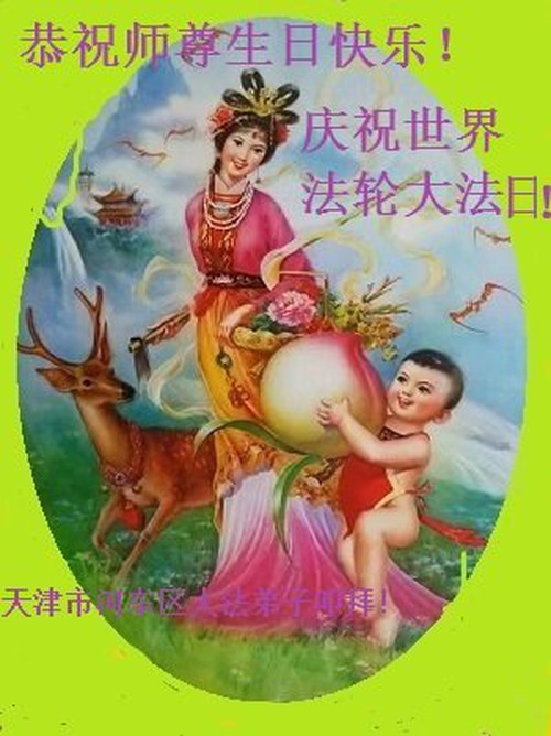Falun Dafa Practitioners from Tianjin Wish Revered Master a Happy Birthday and Celebrate World Falun Dafa Day!