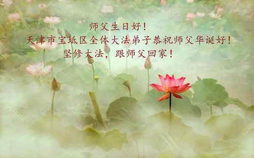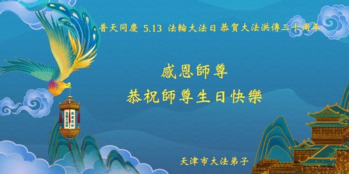 Falun Dafa Practitioners from Tianjin Celebrate World Falun Dafa Day and Respectfully Wish Master Li Hongzhi a Happy Birthday (28 Greetings)