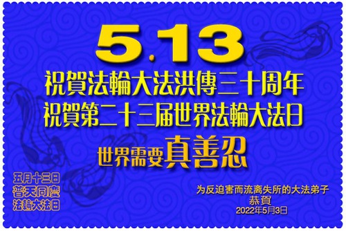 Falun Dafa Practitioners from China Wish Revered Master a Happy Birthday and Celebrate World Falun Dafa Day!