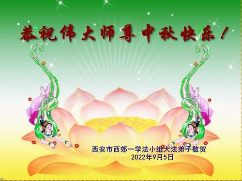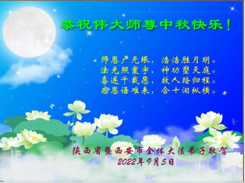 Falun Dafa Practitioners from Xi’an City Respectfully Wish Master Li Hongzhi a Happy Mid-Autumn Festival (18 Greetings)