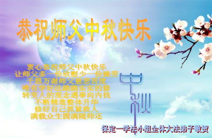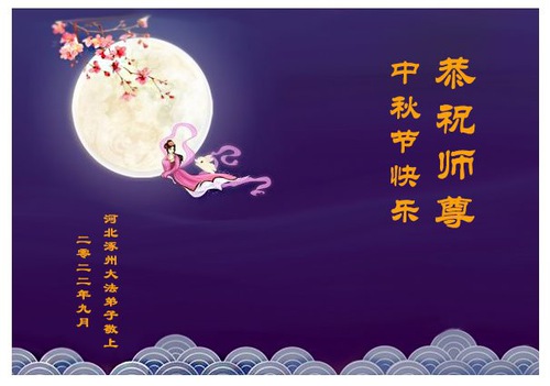 Falun Dafa Practitioners from Baoding City Wish Revered Master a Happy Mid-Autumn Festival!