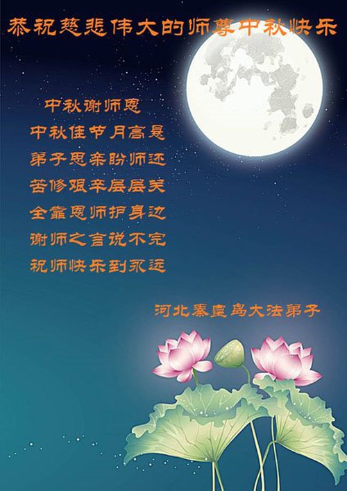 Falun Dafa Practitioners from Qinhuangdao City Respectfully Wish Master Li Hongzhi a Happy Mid-Autumn Festival (21 Greetings)