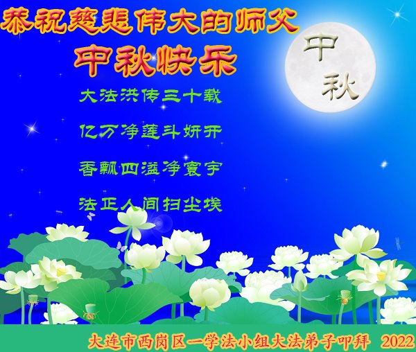 Falun Dafa Practitioners from Dalian City Respectfully Wish Master Li Hongzhi a Happy Mid-Autumn Festival (19 Greetings)