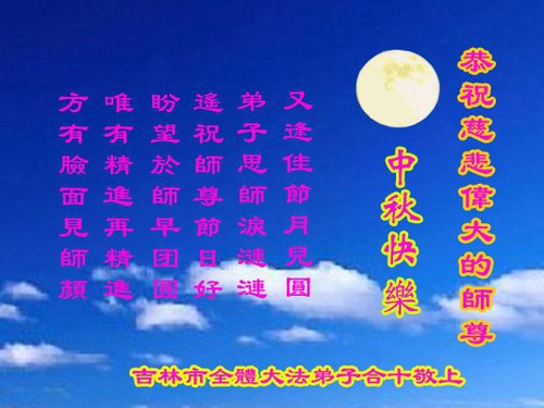 Falun Dafa Practitioners from Jilin City Respectfully Wish Master Li Hongzhi a Happy Mid-Autumn Festival (21 Greetings)
