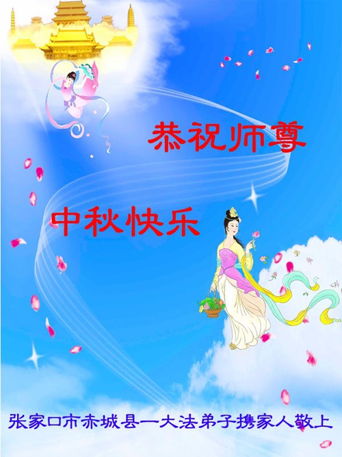 Falun Dafa Practitioners from Zhangjiakou City Respectfully Wish Master Li Hongzhi a Happy Mid-Autumn Festival (24 Greetings)