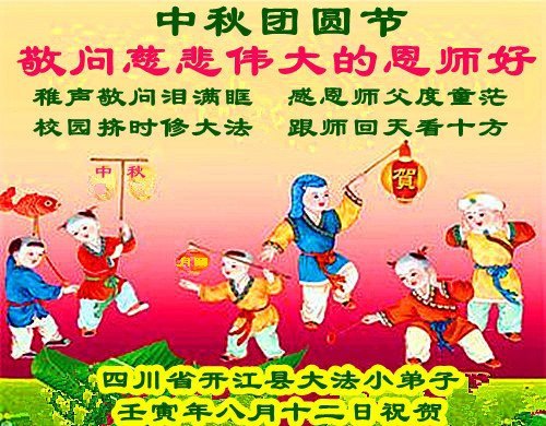(Minghui.org) To mark the 2022 Mid-Autumn festival, many Falun Dafa practitioners have sent their heartfelt greetings to Master Li Hongzhi, the founder of the practice. They expressed their gratitude to Master Li for all the benefits they’ve received and vow to be more diligent in their daily cultivation.