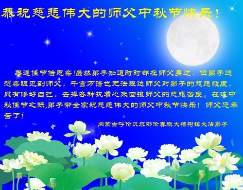 Falun Dafa Practitioners from Inner Mongolia Respectfully Wish Master Li Hongzhi a Happy Mid-Autumn Festival (24 Greetings)