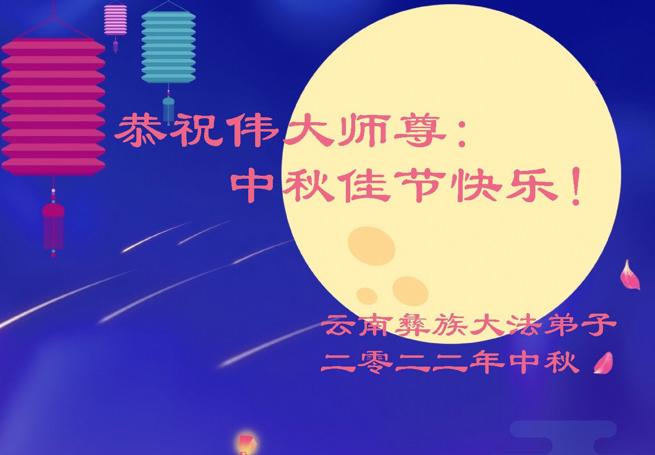 Falun Dafa Practitioners from Yunnan Province Respectfully Wish Master Li Hongzhi a Happy Mid-Autumn Festival (22 Greetings)