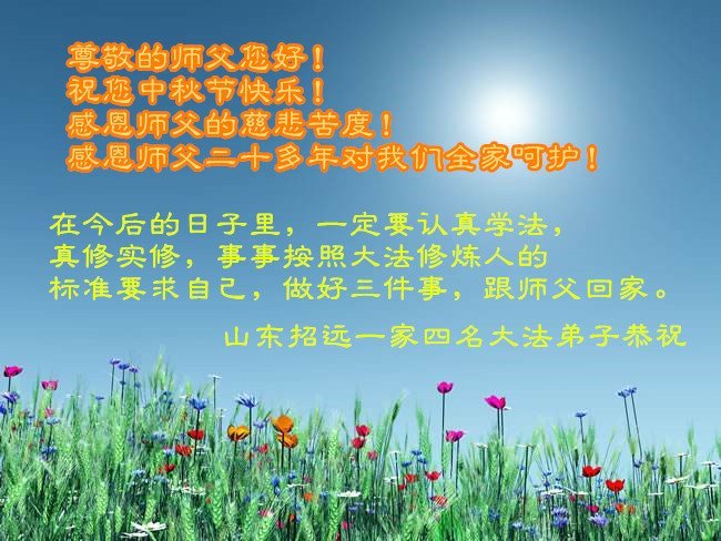 Falun Dafa Practitioners from Shandong Province Respectfully Wish Master Li Hongzhi a Happy Mid-Autumn Festival (26 Greetings)
