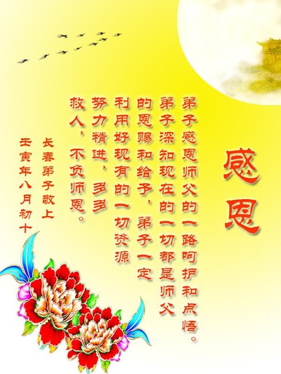 Falun Dafa Practitioners from Changchun City Respectfully Wish Master Li Hongzhi a Happy Mid-Autumn Festival (20 Greetings)