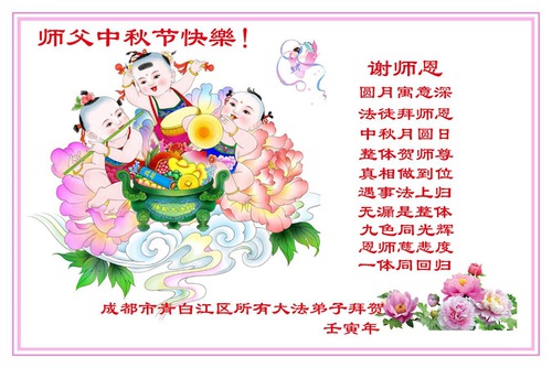 Falun Dafa Practitioners from Chengdu City Respectfully Wish Master Li Hongzhi a Happy Mid-Autumn Festival (22 Greetings)