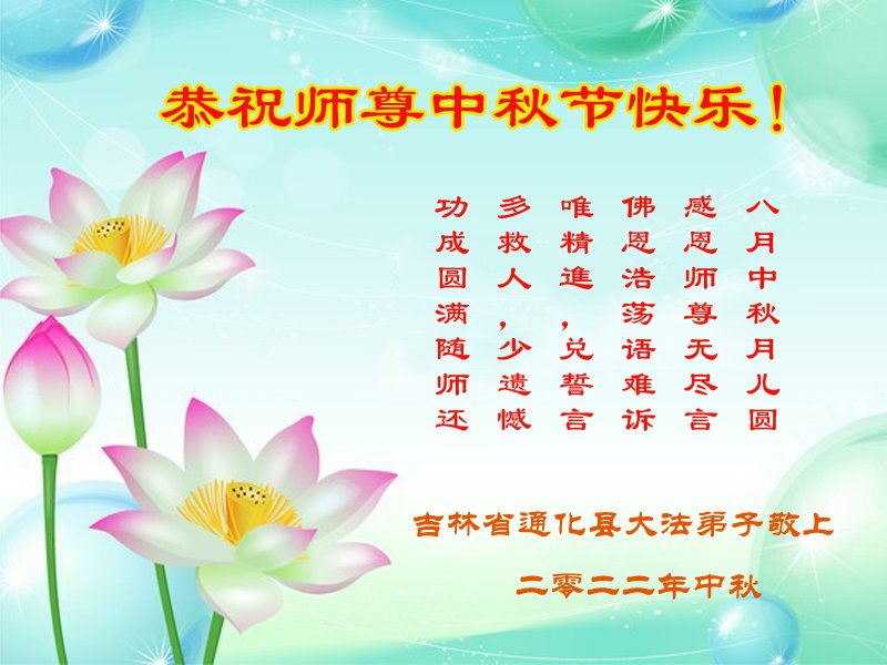 Falun Dafa Practitioners from Jilin Province Respectfully Wish Master Li Hongzhi a Happy Mid-Autumn Festival (23 Greetings)