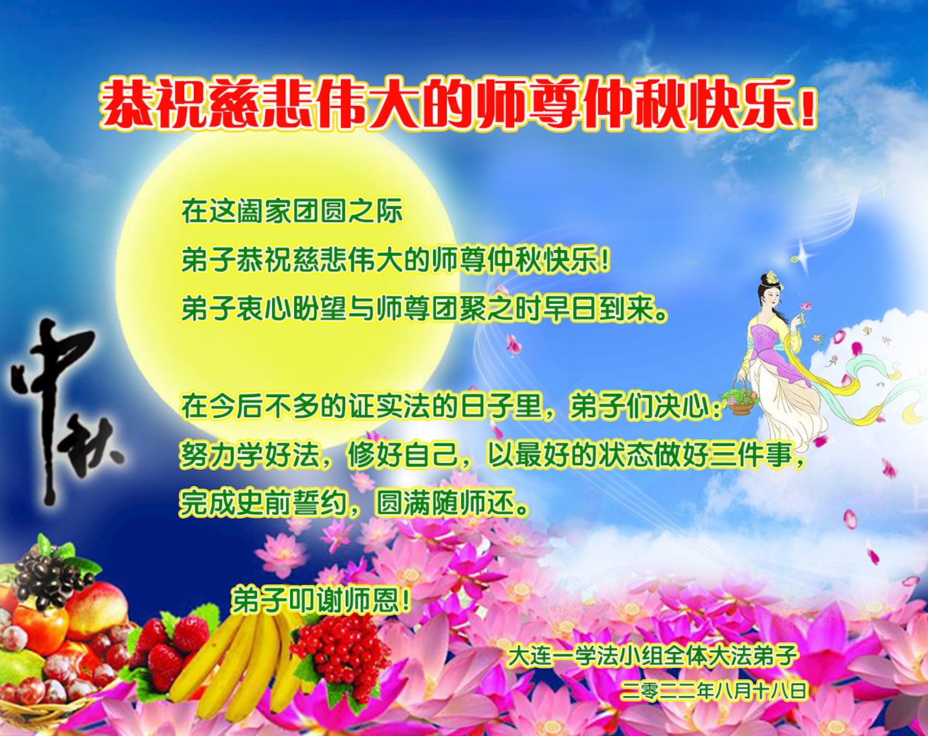 Falun Dafa Practitioners from Dalian City Respectfully Wish Master Li Hongzhi a Happy Mid-Autumn Festival (26 Greetings)
