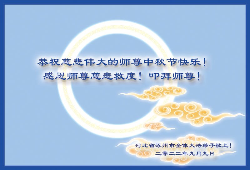Falun Dafa Practitioners from Chongqing City and Hebei Province, China Respectfully Wish Master Li Hongzhi a Happy Mid-Autumn Festival (39 Greetings)