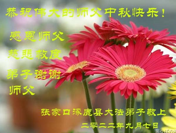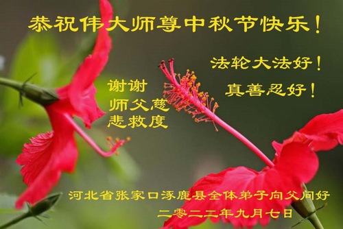 Falun Dafa Practitioners from Zhangjiakou City Respectfully Wish Master Li Hongzhi a Happy Mid-Autumn Festival (22 Greetings)