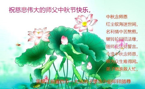 Falun Dafa Practitioners from Jixi City Respectfully Wish Master Li Hongzhi a Happy Mid-Autumn Festival (22 Greetings)