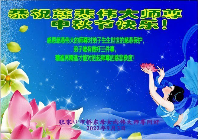 Falun Dafa Practitioners from Zhangjiakou City Respectfully Wish Master Li Hongzhi a Happy Mid-Autumn Festival (24 Greetings)