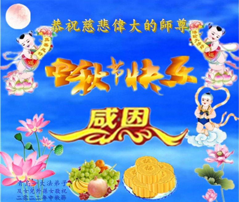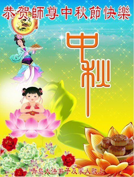 Falun Dafa Practitioners from Qingdao City Respectfully Wish Master Li Hongzhi a Happy Mid-Autumn Festival (23 Greetings)