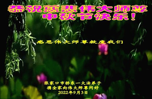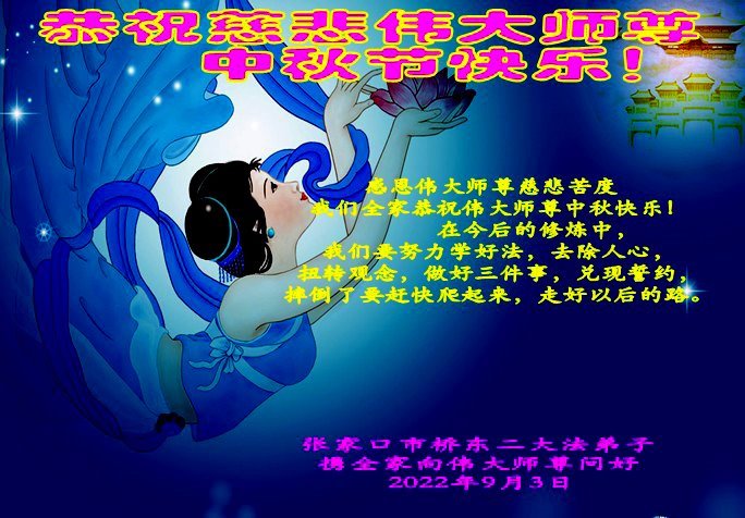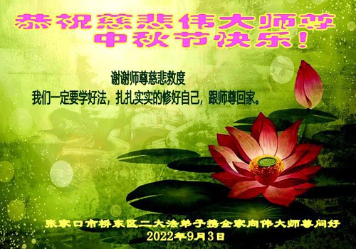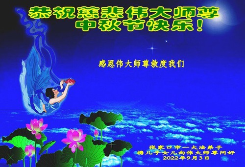 Falun Dafa Practitioners from Zhangjiakou City Respectfully Wish Master Li Hongzhi a Happy Mid-Autumn Festival (23 Greetings)