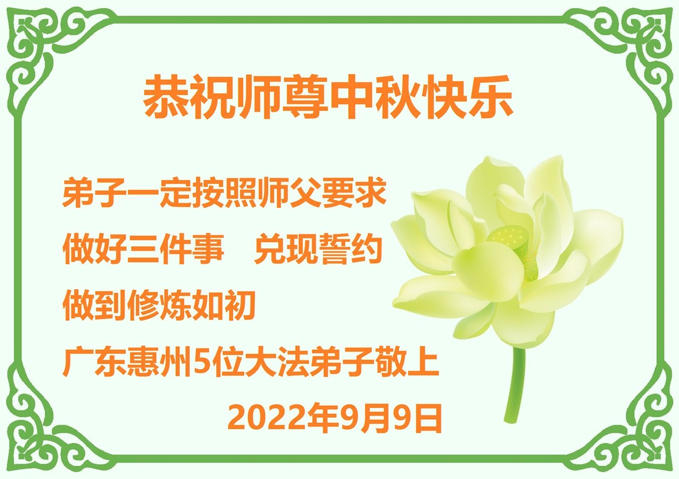 Falun Dafa Practitioners from China Respectfully Wish Master Li Hongzhi a Happy Mid-Autumn Festival (26 Greetings)