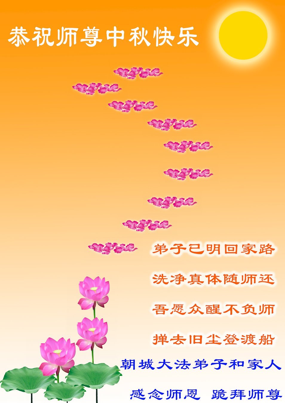 Falun Dafa Practitioners from China Respectfully Wish Master Li Hongzhi a Happy Mid-Autumn Festival (28 Greetings)
