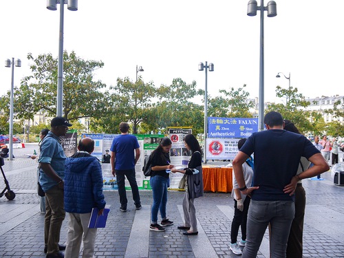 (Minghui.org) Falun Dafa practitioners carried out an exercise demonstration, truth clarification about Falun Dafa, and collecting signatures for their petition on the afternoons of August 28 and September 3, 2022 at the Place d'Italie in Paris.