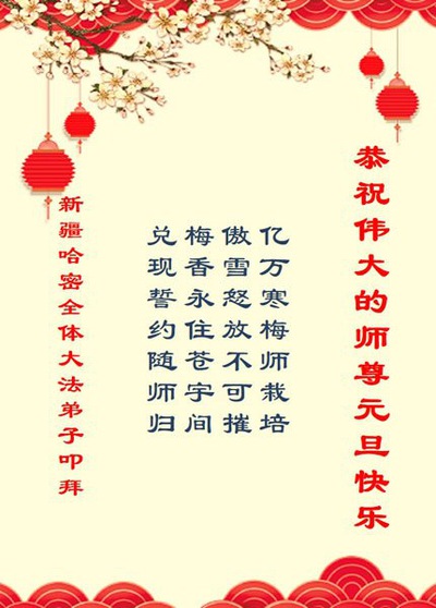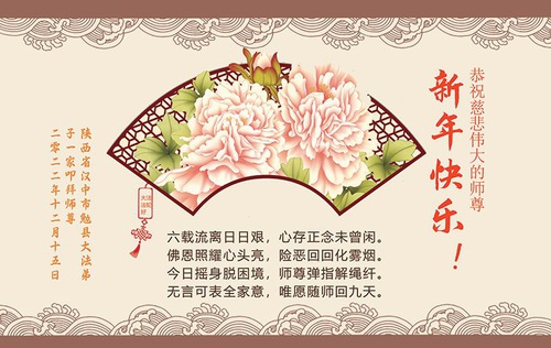 Falun Dafa Practitioners from Shaanxi, Sichuan and Xinjiang Provinces Respectfully Wish Master Li Hongzhi a Happy New Year (32 Greetings)