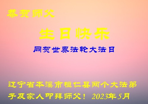 Falun Dafa Practitioners from Benxi City Wish Revered Master a Happy Birthday and Celebrate World Falun Dafa Day!