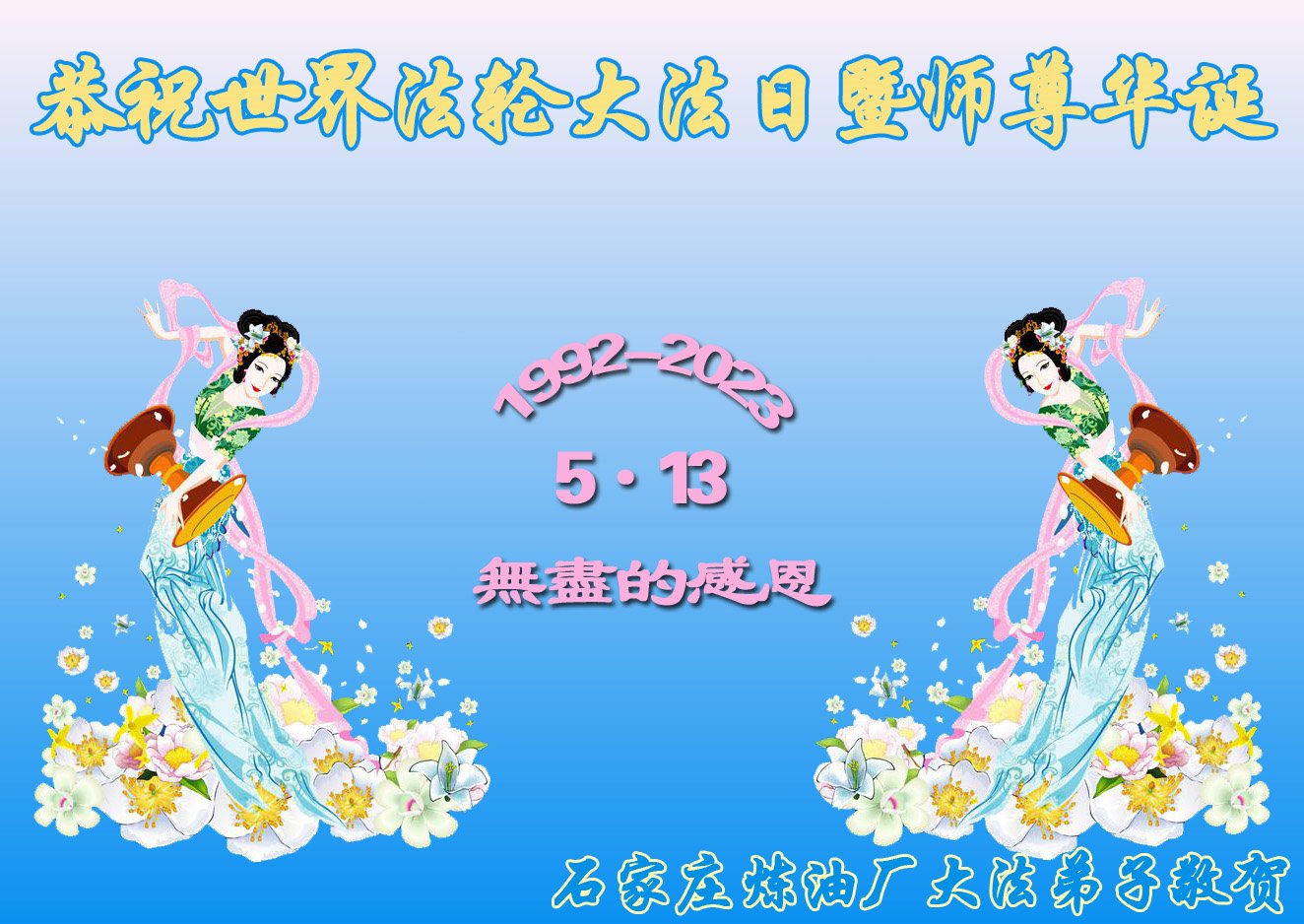 (Minghui.org) To celebrate May 13, Falun Dafa practitioners from China have sent in their warmest greetings to Master Li, the founder of the practice. They thanked Master Li for guiding them on their spiritual journeys, purifying their bodies, and protecting them along the way. They vowed to cultivate themselves better and fulfill their historic vows.
