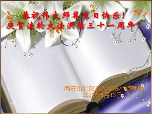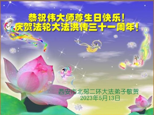 Falun Dafa Practitioners from Xi’an Celebrate World Falun Dafa Day and Respectfully Wish Master Li Hongzhi a Happy Birthday (21 Greetings)