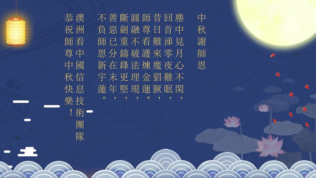 (Minghui.org) Practitioners in the following places in Australia and New Zealand wish Master Li a Happy Mid-Autumn Festival: