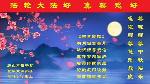 Falun Dafa Practitioners from Tangshan City Respectfully Wish Master Li Hongzhi a Happy Mid-Autumn Festival (29 Greetings)
