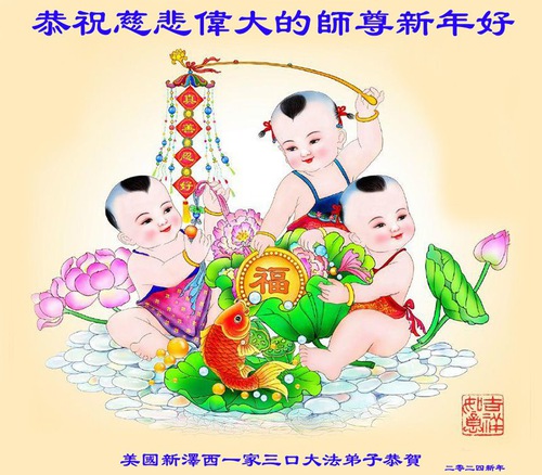 Six practitioners from a family in Eastern U.S. wish revered Master a Happy New Year!