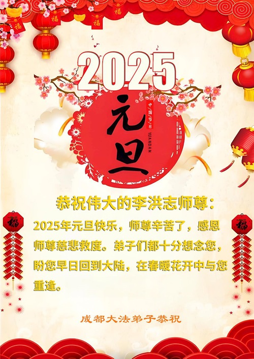 Falun Dafa Practitioners from Chengdu City Respectfully Wish Master Li Hongzhi a Happy New Year (18 Greetings)