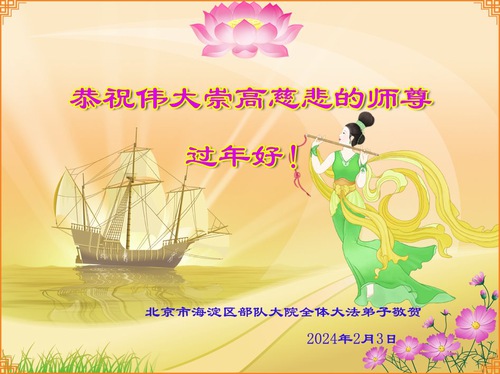 (Minghui.org) With the advent of the 2024 Chinese New Year, Falun Dafa practitioners in the military extended their sincere greetings to Master Li Hongzhi, the founder of the practice and wished him a happy holiday.