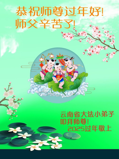 (Minghui.org) To celebrate the 2025 Chinese New Year, many young Falun Dafa practitioners from China sent in their greetings, wishing Master Li Hongzhi, the founder of Falun Dafa, a happy Chinese New Year.