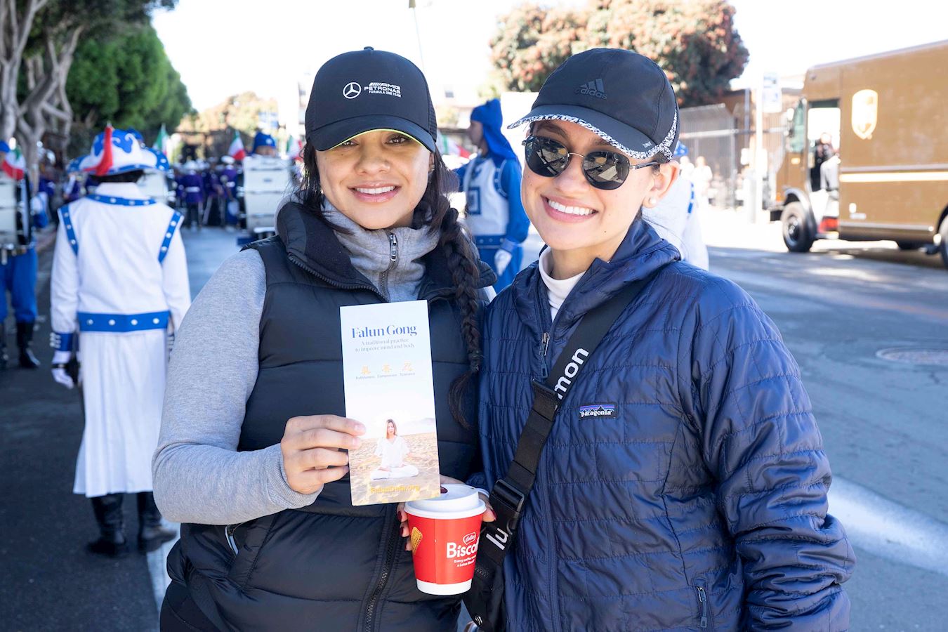Gabriela Canne, who lives in San Francisco, and her friend Victoria stopped to watch the Tian Guo Marching Band as they rehearsed. Gabriela said she loved the band and shared a recording of the rehearsal with her nephew to tell them how wonderful the band’s performance was.