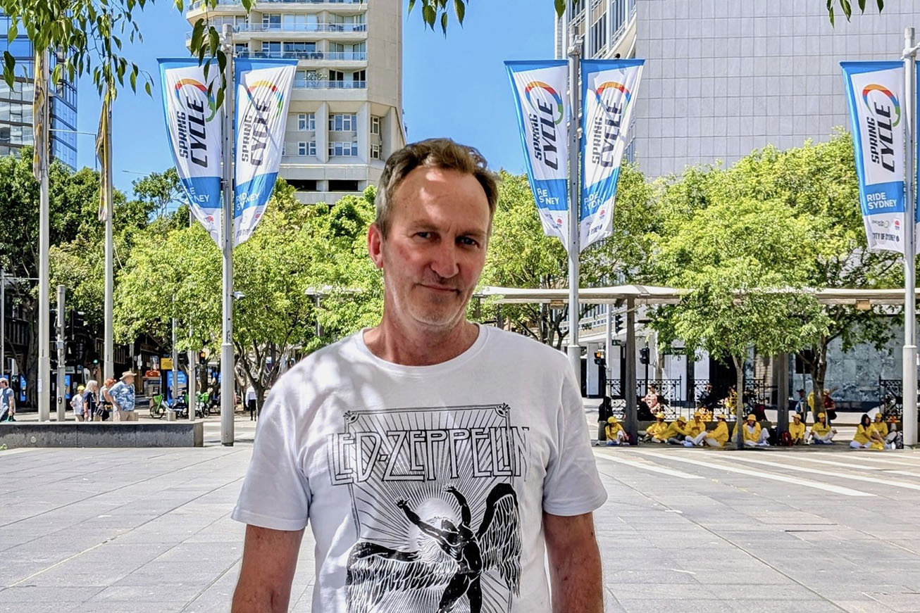 Sean Tooker, a former field officer for Parks Wildlife, expressed admiration and respect for Falun Dafa practitioners’ peaceful protest of the persecution in China.
