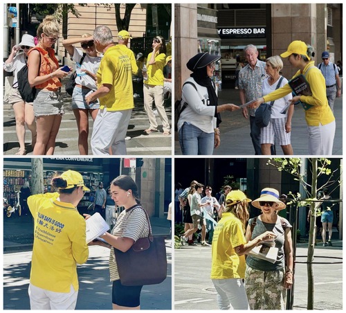 (Minghui.org) Falun Dafa practitioners from various parts of Australia, including Queensland, Western Australia, and the southern district in Sydney, gathered at the plaza next to the Customs House building in downtown Sydney on October 11, 2025, and held activities to tell people the amazing benefits of the spiritual practice. They also told residents and tourists about the ongoing persecution in China.