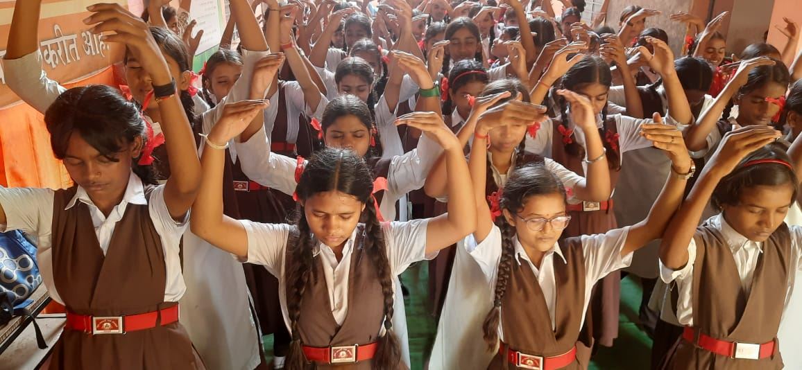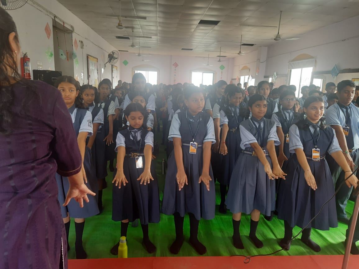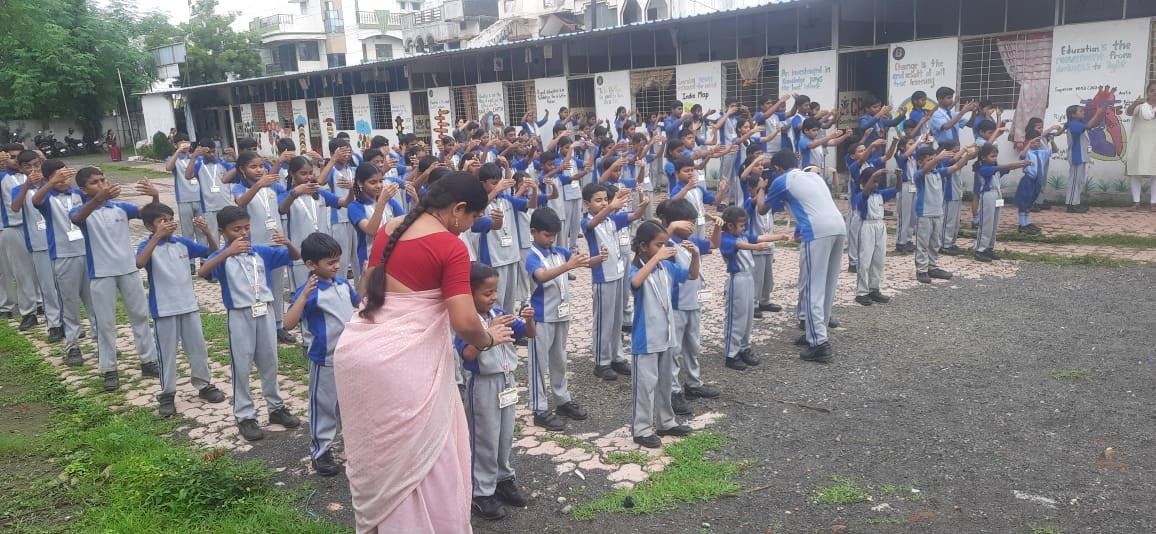Students of School of Scholars in Nagpur did the exercises with practitioners.
