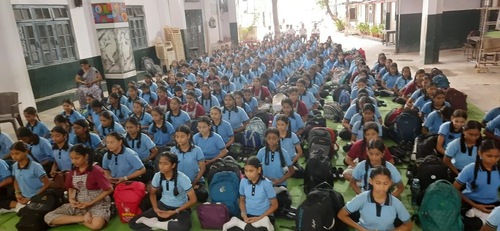 Nutan Saraswati High School students meditate.