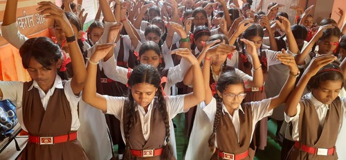 Gayatri high school students do the exercises.